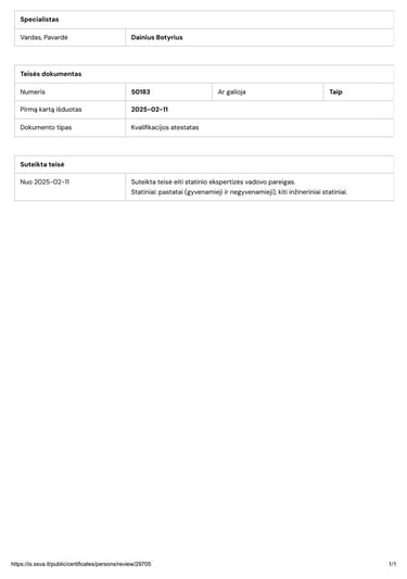 Mes esame patyrę ir atestuoti statybos inžinieriai, savo srities profesionalai, turintys universitetinį išsilavinimą ir darbo patirties statybų sektoriuje. Statybos - sudėtingas bei ypatingų žinių reikalaujantis procesas, todėl kiekvienas mūsų komandos narys specializuojasi tam tikroje konkrečioje statybų srityje.